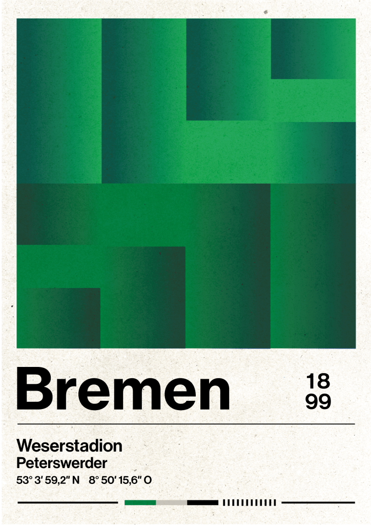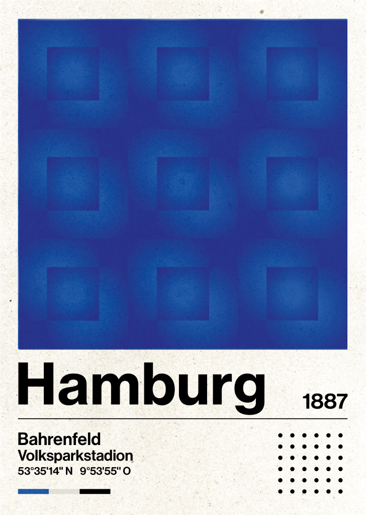 I am a football fan. But I find that there are few football-related posters that combine design and football passion. I love the idea of combining both, so as a personal project I have designed minimalist football fan posters, in the respective club colours, inspired by the Bauhaus style.